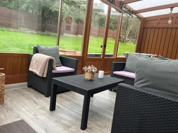 La casa dispone de 3 habitaciones dobles completamente equipadas para la estancia con baño completo y televisión, cocina-salón, amplio jardín con área de recreo infantil y barbacoa.