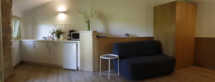 En el 2022 hemos reformado alguna habitación añadiéndoles una office, es decir, un espacio con microondas, cafetera, nevera, vajilla, etc. Sin fogón pero perfectas para aquellos clientes mas independientes que deseen hacerse ellos mismos el desayuno o una cena o comida ligera y poder quedarse todo el día en nuestro jardín descansando. Son habitaciones tipo estudio dobles o familiares que admiten mascotas puesto que tienen salida directa al jardín. Con una llamada de teléfono les explico encantada nuestras mejores opciones para su estancia.