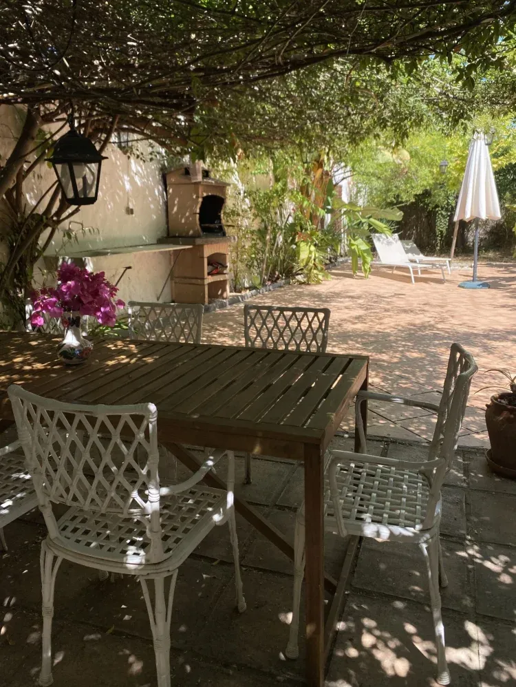 When we enter the property, behind the large iron gates, we are surrounded by beauty. The little white chapel, the century-old vines and exotic trees, the colorful flowers… Magic! The house is very special, simply and tastefully decorated with amazing volumes and space. It is full of antiques which add a unique atmosphere to it. We loved to have a relaxing time in the peaceful patio surrounded with the smell of orange blossom and bucolic garden. The best place to unwind from the stress of the city. We will be very happy to come back to La FUNDICIÓN de Alcora for a longer stay!