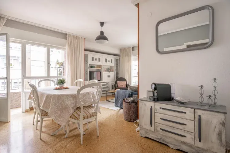 Nada más cruzar la puerta de entrada, accederás al luminoso salón - comedor del piso, equipado con una gran mesa principal para 6 comensales, un confortable sofá y un sillón adicional. Perfectos para tomar el almuerzo o relajarse viendo la televisión o jugando a algún juego de mesa.