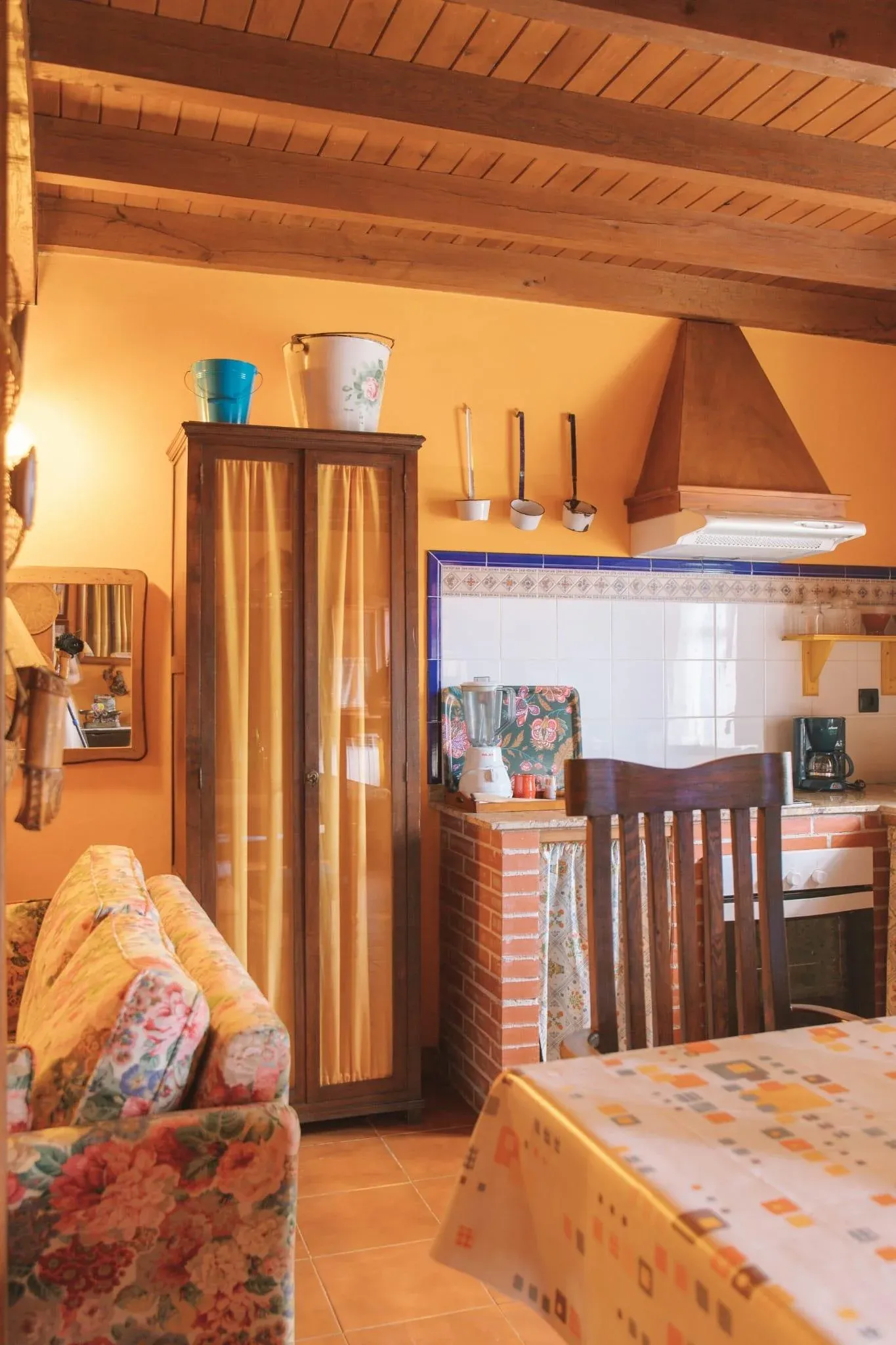 En la planta baja dispone de amplio salón-cocina y aseo. La cocina está totalmente equipada, con vitrocerámica, microondas, nevera, lavadora, plancha, cafetera, tostadora y todo el menaje de cocina necesario. El salón dispone de chimenea y TV.
