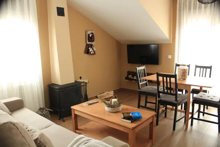 El salón-cocina tiene un sofá-cama de 1.40, una chimenea, un televisor de LED de 42” y terraza privada.