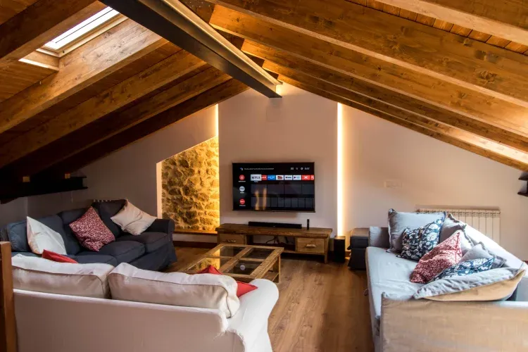 Casa antigua reformada muy acogedora. El espacio de la buhardilla está fenomenal para ver películas, jugar… a los niños les encantó. La casa está muy bien caldeada y la chimenea aporta el toque de casa de pueblo.