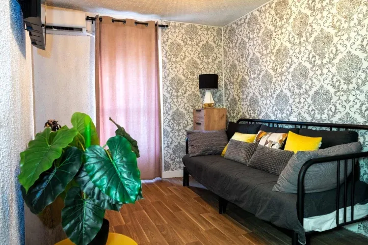 Con capacidad para 6 o 7 personas, en su planta baja dispone de salón-comedor con cocina americana totalmente equipada con menaje completo, electrodomésticos y una pequeña barra de bar además de mesa para seis personas, televisión con Smart TV, aire acondicionado de calor y frío , WIFI en toda la casa, un sofá cama y una preciosa estufa de leña imprescindible para hacer tu estancia aún más acogedora en los días de invierno.