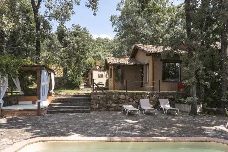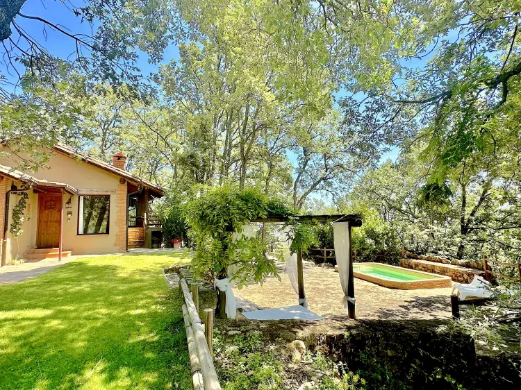 Mirando al sur y enclavada en la pendiente de la montaña, entre grandes piedras con musgo y robles, la casa es el lugar perfecto para el relax y el descanso.