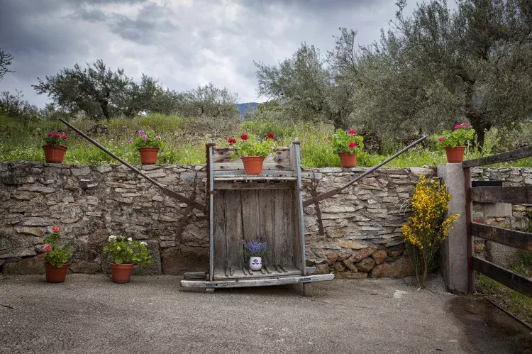 Dispone de un amplio porche delantero con aparcamiento, un patio trasero con barbacoa y un jardín precioso con piscina, cenador y cocina exterior, todo en plena naturaleza rodeado de olivos centenarios.