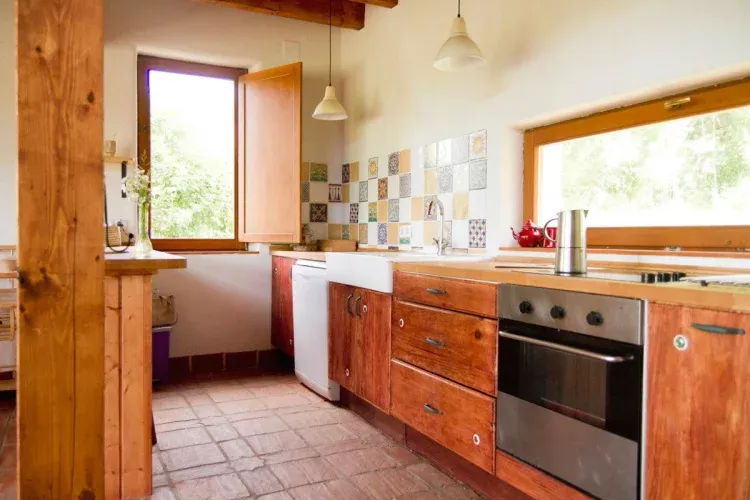 Dispone de un salón en la planta inferior de la casa con una chimenea de leña y esta unido al comedor y a la cocina formando una bonita y espaciosa zona común, el altillo situada en la parte superior de la casa rural hay dos camas nido y un sofá bajo, 2 aseos, 2 habitaciones dobles y 1 habitación de matrimonio.