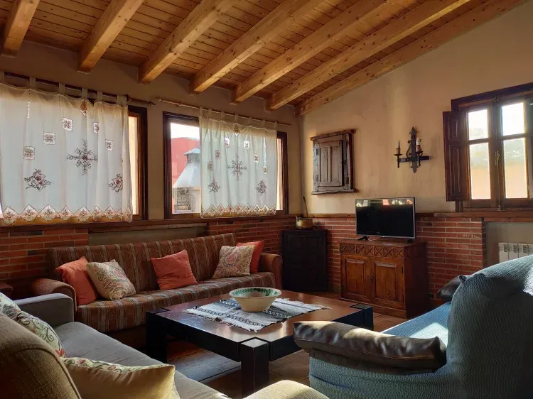 La casa tiene buena calefacción y salón suficientemente grande para 10 personas. Sin embargo la tv es muy pequeña para 10 personas al menos debería tener 50 pulgadas. En la casa se indica que tiene acceso a Internet pero no tiene wifi y nuestros móviles tenían la cobertura al mínimo. Tocábamos a los cubiertos justos por persona y no pudimos cortar bien ni un cacho queso por no tener un buen cuchillo. El techo de la planta de arriba era bajo y muy incómodo estar agachándose. Además, cada paso se escuchaba en la planta baja y cualquier ruido se oía en toda la casa. Por ejemplo si unos se quedan escuchando música otros no pueden dormir. Estaba genial que hubiera un baño por habitación, pero eran muy pequeños y casi no cabes en el wc. Algunas de las camas son incómodas, una de las de matrimonio con muelles. La barbacoa está bien pero el lavavajillas limpiaba muy mal. Tal vez por utilizar pastillas baratas. En definitiva, no repetiríamos aunque agradecemos la amabilidad de los propietarios y su atención.