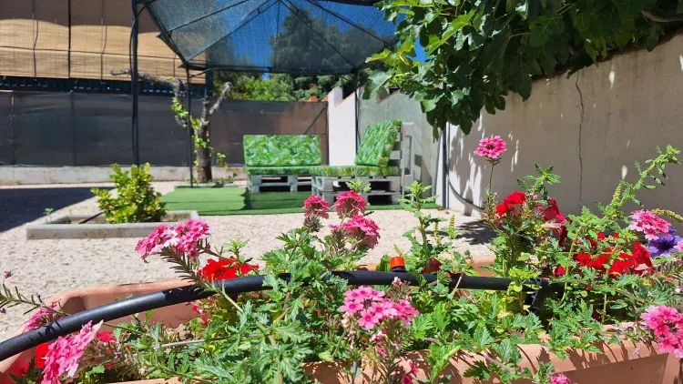 La propiedad cuenta con un hermoso patio con pérgola y una zona chill out perfecta para momentos de descanso al aire libre.