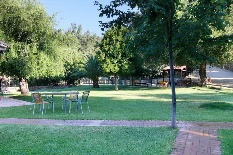 Ubicada en una finca de 20.000 m2 a orillas de la Garganta Arroyo-Remolinos, rodeada de robles, álamos, mimosas y fresnos, con una amplia variedad de árboles frutales: cerezos, higueras, limoneros, membrillos…