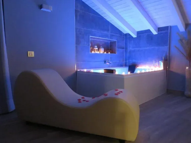 El apartamento cuenta con 1 dormitorio con cama de 1,50, una espaciosa bañera de hidromasaje de 1,90 x 1,30 con cromoterapia ,chorros de aire y calefactor para mantener la temperatura. También cuenta con un cómodo sillón tántrico. Vestidor, salón-cocina, TV de pantalla plana, wifi, secador de pelo.