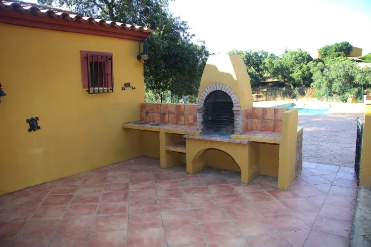 En el exterior, dos porches —uno cubierto y otro al aire libre— invitan a disfrutar de comidas al fresco, con una barbacoa perfecta. Una pequeña cancilla separa esta zona de la piscina privada, donde te espera una terraza con sombrajo, espacio para tomar el sol y un aseo exterior, ideal para mayor comodidad durante el baño.