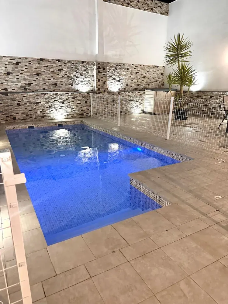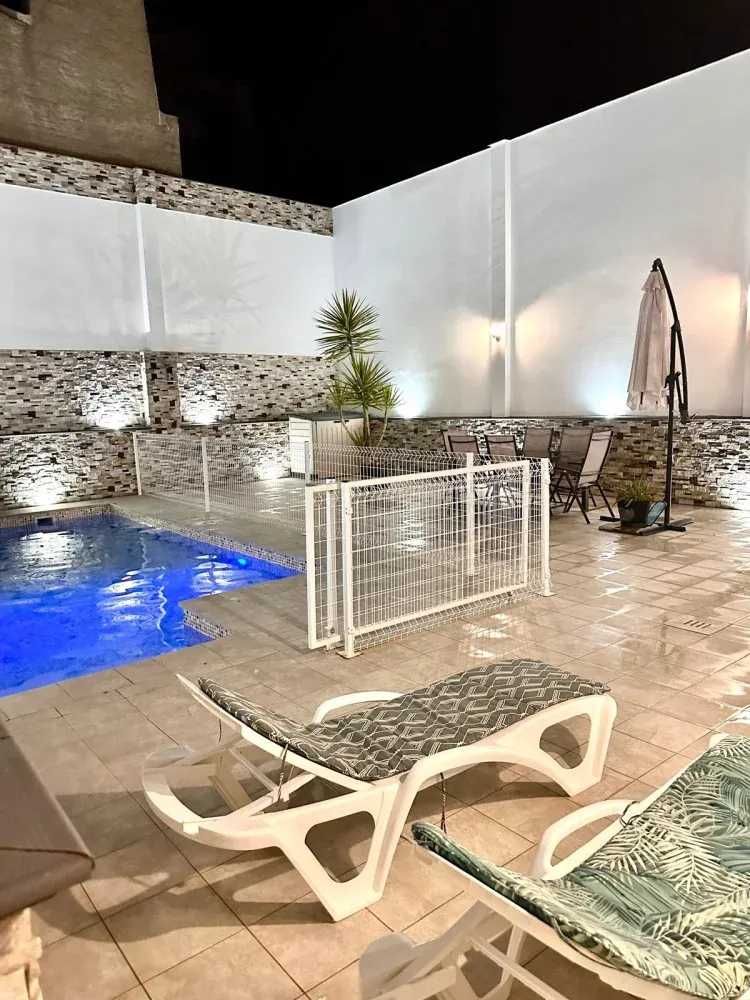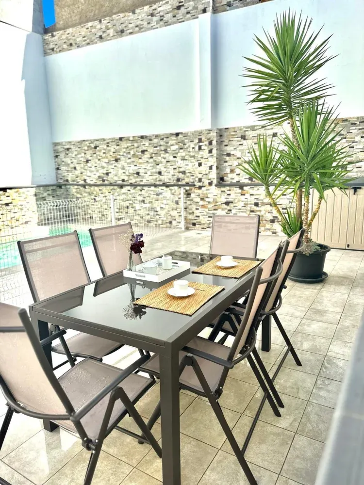 - Gran patio con piscina protegida con valla para los más pequeños, ducha y zona de recreo.