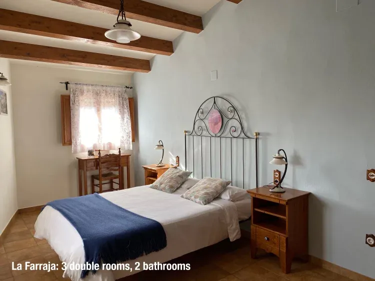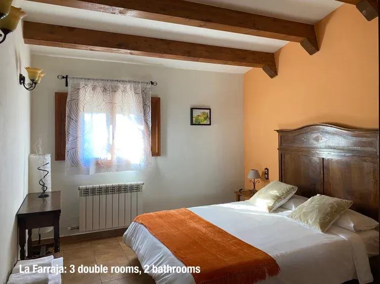 La Farraja: es una casa rural a pie de jardín, es amplia y está toda en una sola planta tiene capacidad para 6 plazas y es accesible para minusválidos. Dispone de 3 habitaciones dobles, 2 baños y una gran sala de estar con comedor y cocina.