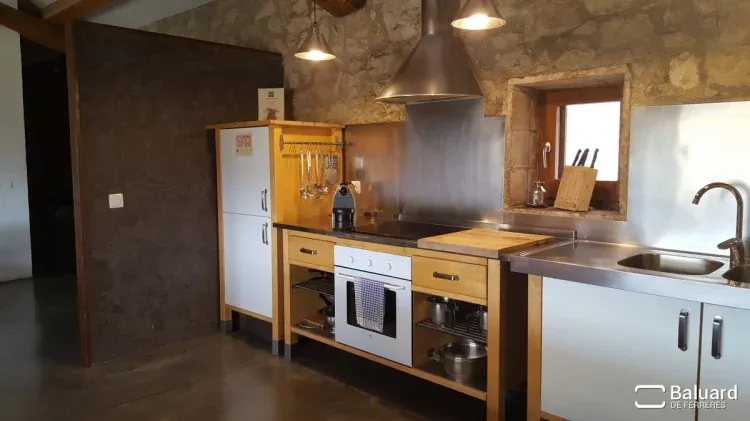 Salón-comedor de 45 m2, con Wifi, chimenea, TV y DVD. Cocina americana equipada con: vitrocerámica, horno, microondas, lavavajillas, tostadora, batidora, exprimidor, cafetera Nespresso y Italiana