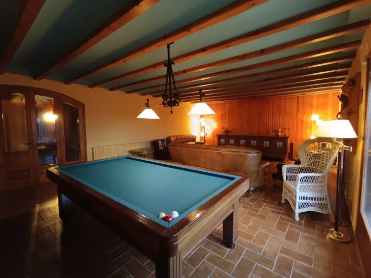 Casa con capacidad hasta 25 personas en 6 habitaciones múltiples y 3 amplios baños todos con bañera, cocina, comedor con chimenea, salon con zona sofás y billar, sala de juegos, amplia terraza, piscina exterior, amplio jardín con bosque privado y zona BBQ con porcho.