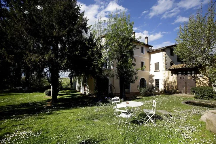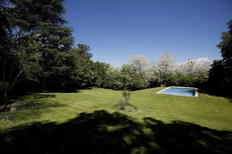 En el jardín hay una piscina grande en una parte muy soleada, rodeada de césped natural y árboles centenarios donde encontraréis mucha sombra, para los a quienes os gusta descansar un poco del sol en verano.