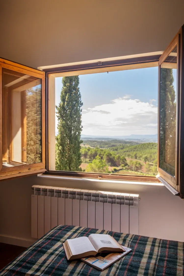Todas las estancias de la casa, desde las habitaciones hasta la sala de estar, ofrecen vistas panorámicas del entorno natural, permitiéndote disfrutar de la belleza del paisaje en todo momento.