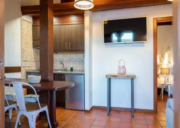 El complejo se encuentra dividido en 8 apartamentos. Cada apartamento tiene capacidad para 2-4 personas, compuestos por una habitación con balcón, con TV y cuarto de baño; salón-comedor con TV; cocina completamente equipada con frigorífico, placa vitrocerámica, microondas, tostador, batidora, cafetera y menaje (vajilla, cubertería, batería, sartenes, etc.). Todos los apartamentos cuentan con sistema de climatización de frío y de calor.
