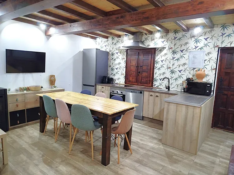 En la planta baja dispone de rampa de acceso, salón-cocina, una habitación con cama de matrimonio e individual y un baño completo. Si alguno de los huéspedes tiene movilidad reducida, no tendrá que subir ninguna escalera.