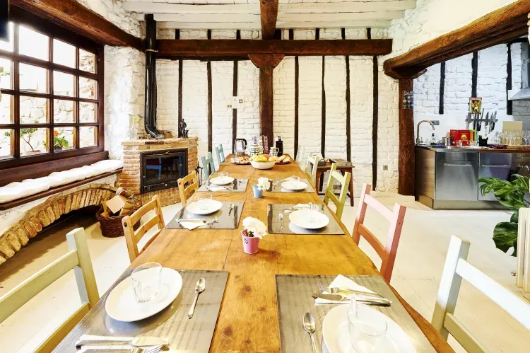 En La Posada de los Sentidos, cada detalle ha sido creado pensando en ti. ¿Te imaginas relajándote en una de nuestras cinco habitaciones dobles con baño privado, decoradas con un estilo rústico y acogedor que te hará sentir como en casa? O tal vez prefieras preparar una deliciosa comida en nuestra cocina totalmente equipada, utilizando productos locales que despiertan todos tus sentidos. Después de un día de aventuras, imagina reunirte con tus seres queridos en la sala de estar con chimenea, compartiendo historias y risas. Y, por supuesto, no puedes perderte nuestra bodega, un espacio íntimo donde podrás degustar los mejores vinos de la región, creando momentos que recordarás para siempre.