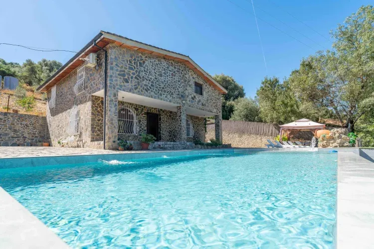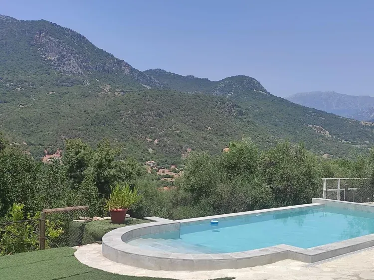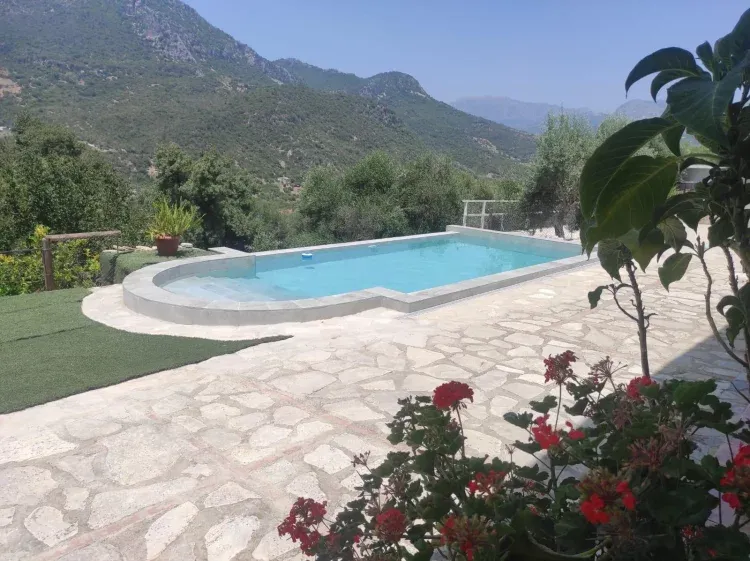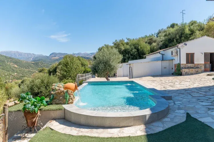 Además consta de un baño y dos aseos. Un gran salón con chimenea una amplia cocina equipada con todos los accesorios, terraza cubierta y piscina infinita, con bonitas vistas a la sierra.