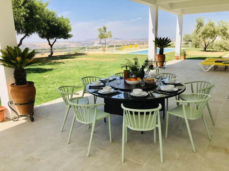 Desde el porche se divisa el pueblo de Arcos de la Frontera con espectaculares vistas y puestas de sol.