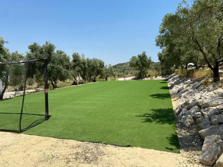 En el jardín se encuentra la piscina privada, entre los olivos tenemos un campo de fútbol 7 y en la azotea un amplio solárium con maravillosas vistas.