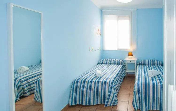 Posee dos 2 dormitorios, uno con cama de matrimonio y otro con 2 camas individuales. La casa tiene un cuarto de baño. Desde el salón se sale a un patio de 20 metros cuadrados en el que hay mesa y sillas. La decoración es muy bonita.