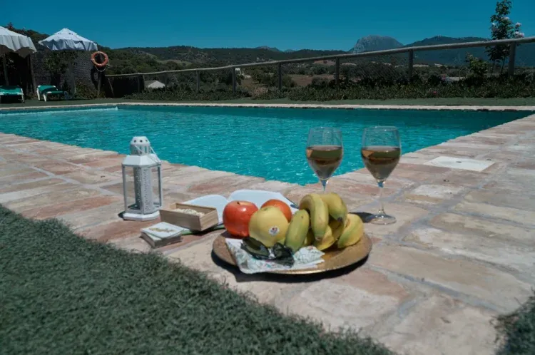 Encontrará una gran piscina privada rodeada de jardines, maravillosas vistas, tumbonas y pérgolas. En invierno la piscina está totalmente protegida con toldo de seguridad y vallada para mayor seguridad de los niños/as y adultos.