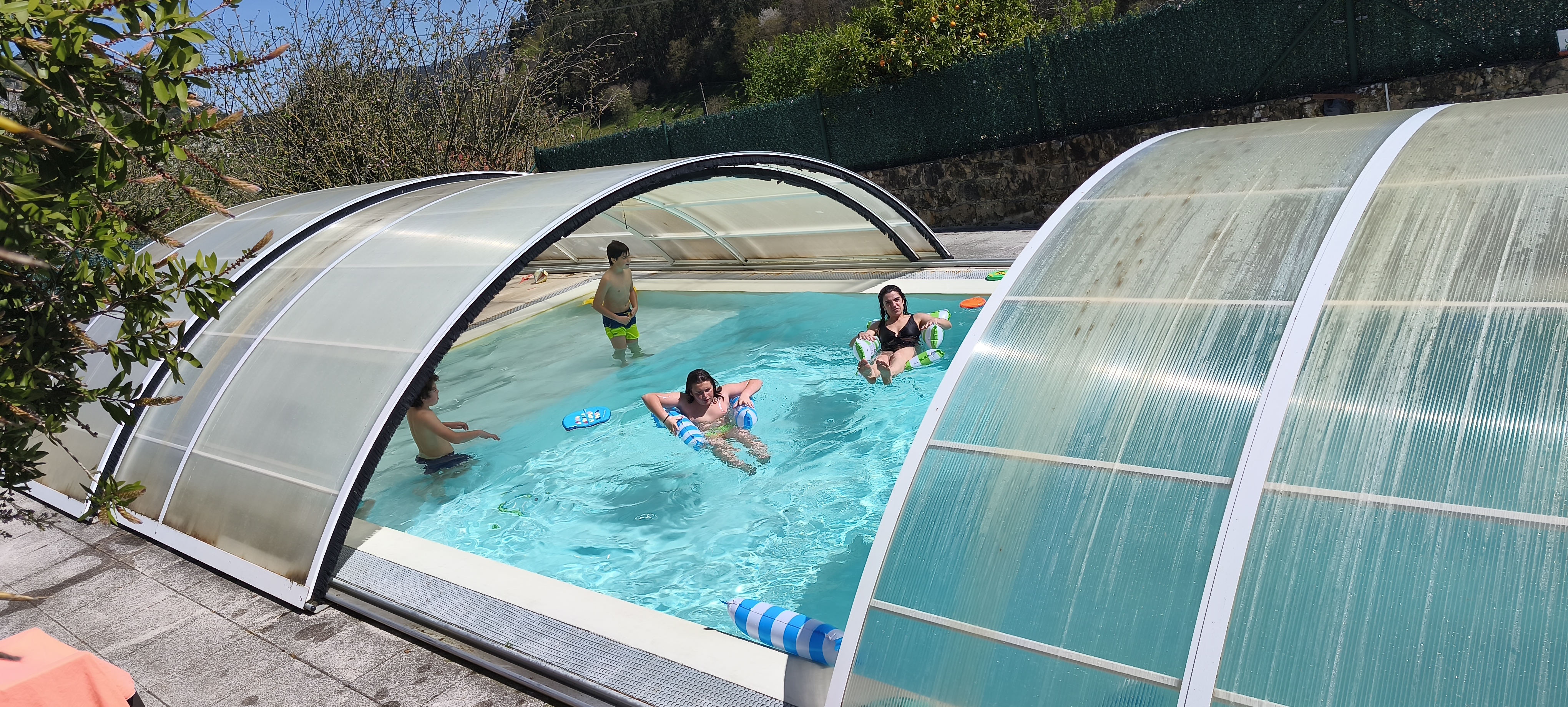 Al ser invierno no hemos podido disfrutar mucho del jardín y la piscina