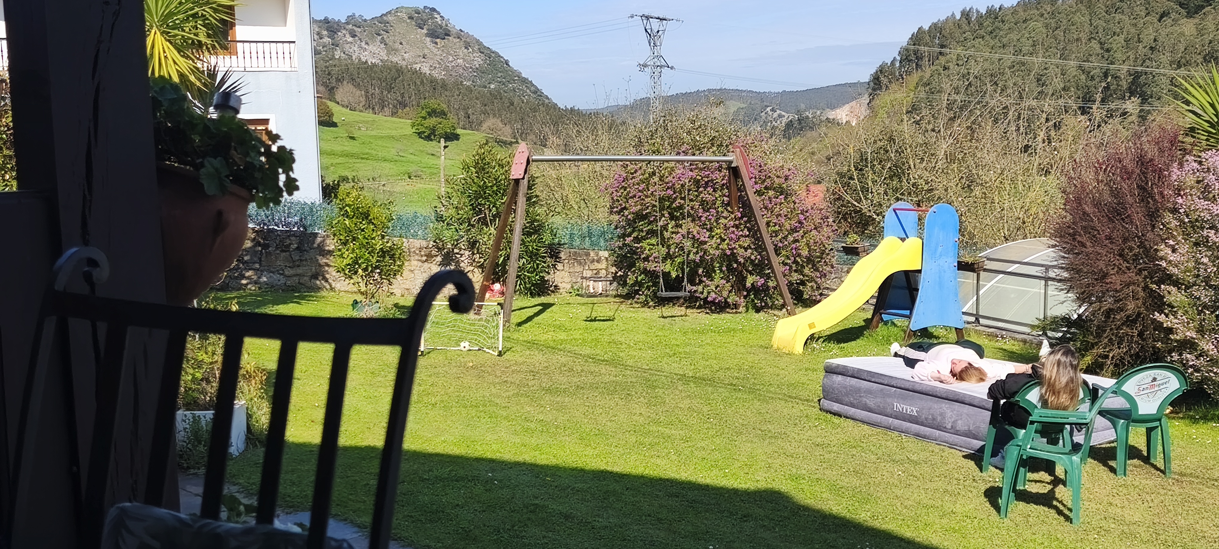 El jardín muy cuidado aunque echamos de menos una mesa exterior un poco más grande que entráramos los diez y alguna tumbona.