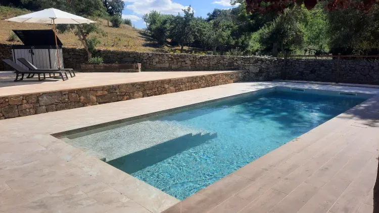La casa está rodeada de 700 m2 de terreno, con patio delantero, porche y jardín con pozo. El porche tiene una barbacoa de obra y mobiliario de comedor exterior. En la parte trasera hay una piscina de 3,5 x 9 m.