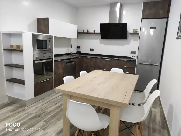 Dispone de un cómodo salón con una Smart TV de 50 pulgadas, Wifi gratis, climatización frío-calor, unas magníficas habitaciones equipadas también con televisión y una cocina completa con todo tipo de electrodomésticos.
