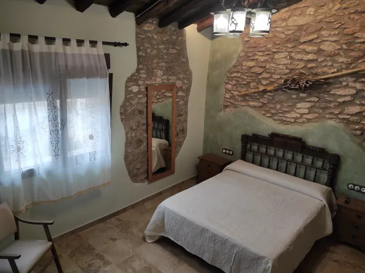 En el otro edificio mas pequeño, en su planta baja tenemos una amplia habitación con dos camas individuales y un baño adaptado para discapacitados, a través de una escalinata de piedra accedemos a la suite (una amplia habitación de matrimonio) con su zona de estar y su baño.