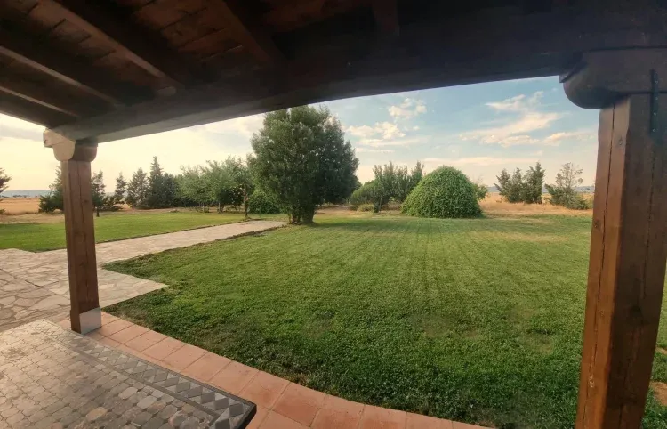 Ubicada privilegiadamente entre el río Alcobilla y el río Bullaque, la finca cuenta con una gran barbacoa techada y utensilios para paella, calderos y parrillas. Junto a la barbacoa, uno de los porches con mesas y sillas.