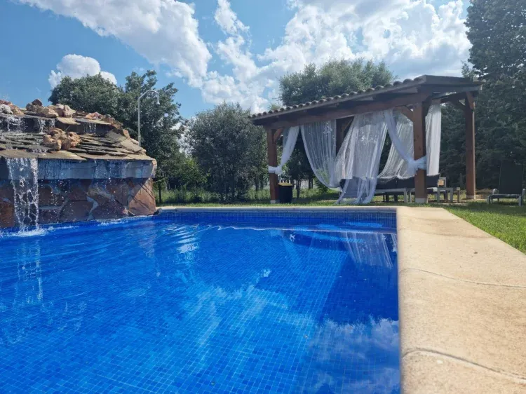 Nuestros huéspedes pueden disfrutar de una amplia zona de baño cercada, con piscina privada, escalonada y con cascada. Zona de césped, mobiliario, sombrajes, jardines, frutales y mucho espacio natural.