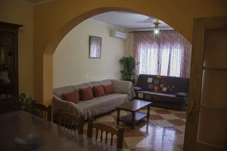 La podemos encontrar en la zona centro del pueblo, y dispone de de tres dormitorios, dos cuartos de baño, amplio salón con chimenea, terraza, cocina completa, patio interior con barbacoa a 300 metros de la Laguna El Rey.