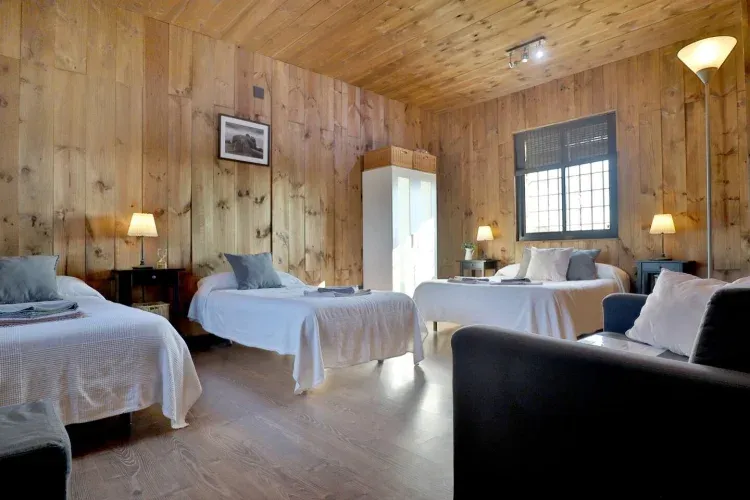 Las habitaciones están en una zona de la vivienda independiente de la zona de tránsito y de las dependencias de los propietarios. Dispone de 8 plazas más 6 supletorias y cuenta con un baño interior y otro baño exterior.