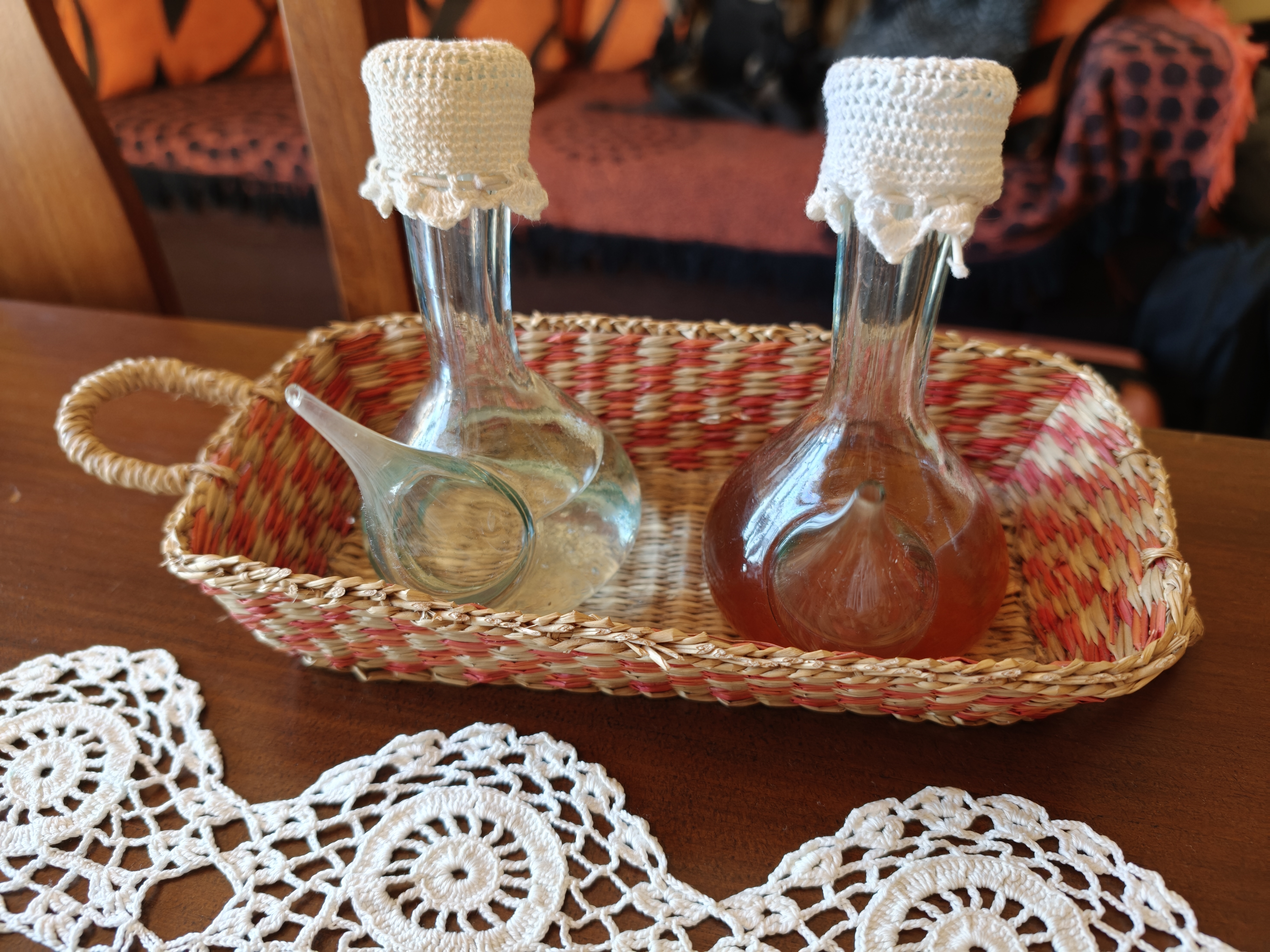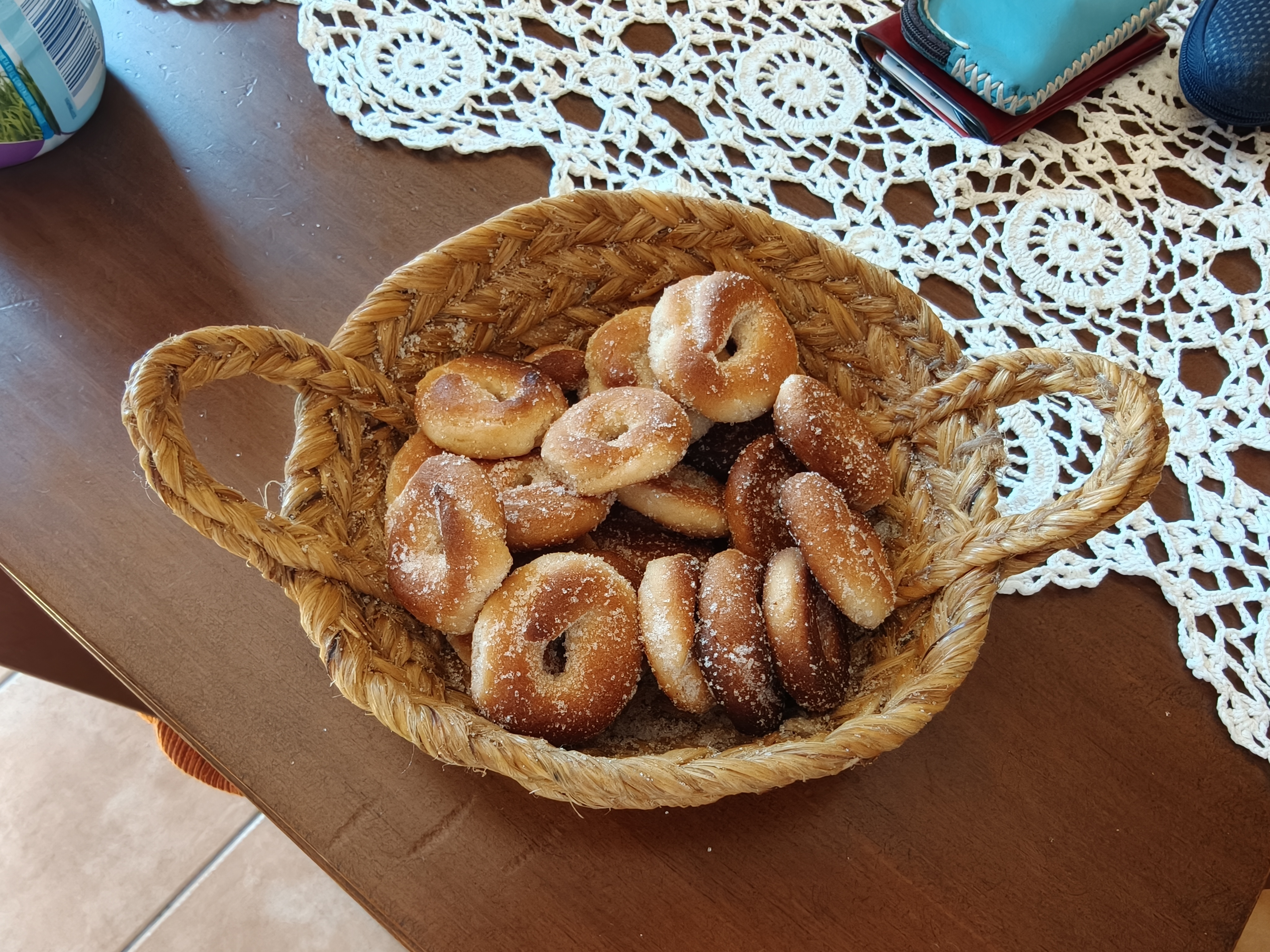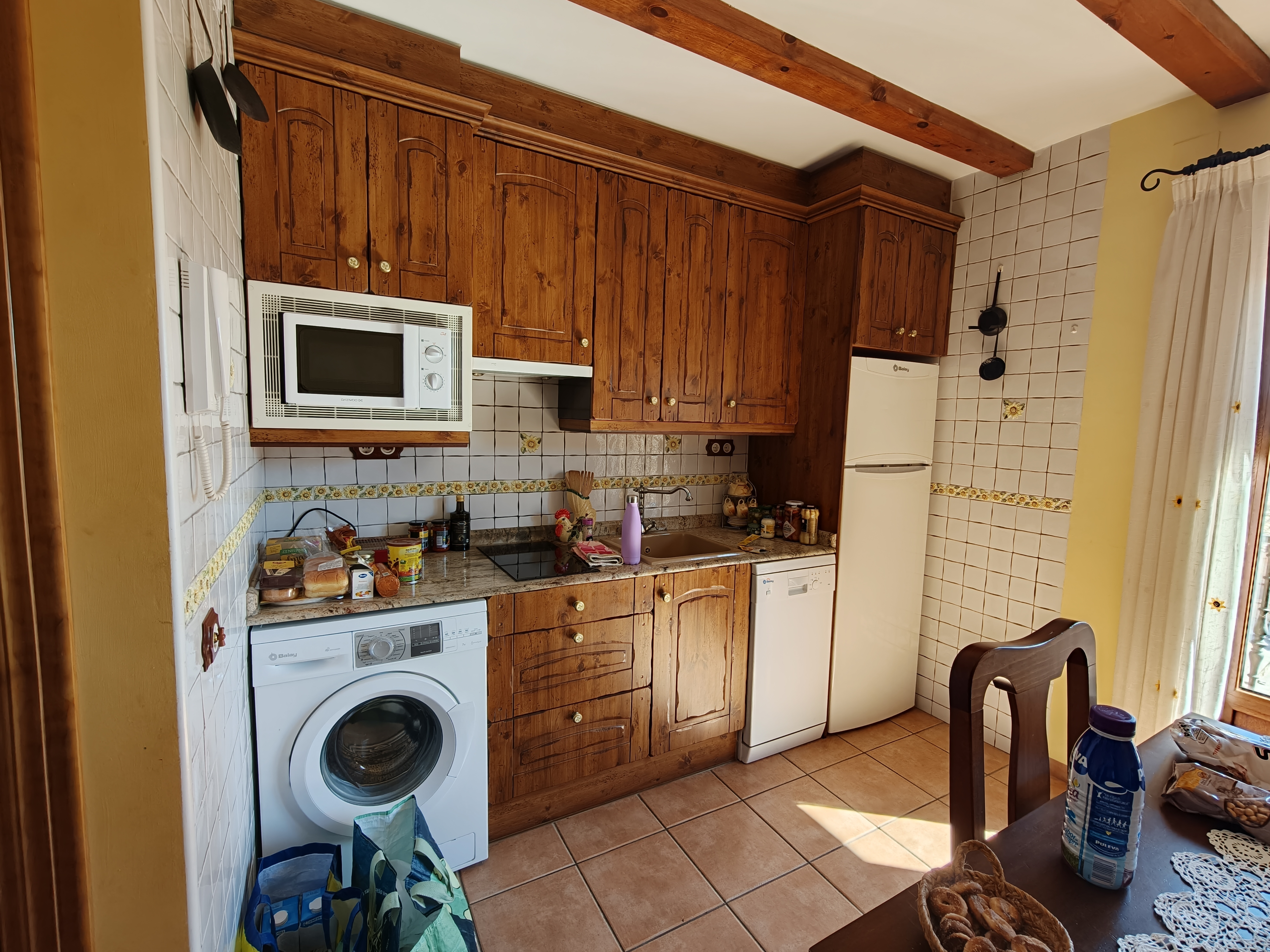 Mari en sus apartamentos te recibe con unos rolletes hechos por ella buenísimos y un poquito de orujo para acompañarles.