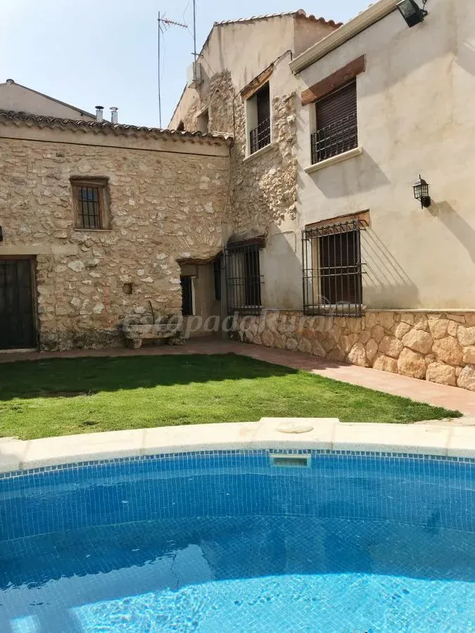 Se trata de una típica construcción manchega de casa y pajar, conservando la bodega-cueva original, con dos plantas que albergan 8 habitaciones dobles, todas con baño completo, set de "café-infusiones" y TV (con opción de camas supletorias). Una de las habitaciones tiene salón y cocina. 2 salones con chimenea (leña incluida). Biblioteca. Cocina totalmente equipada para toda la casa. Placas solares para agua caliente sanitaria y calefacción por suelo radiante. Pequeña piscina climatizada. Porche y zona ajardinada.