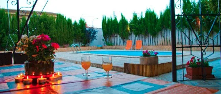 En el exterior de Casablanca está la joya de la casa: un patio enorme, ajardinado y amueblado. La finca cuenta con barbacoa, piscina, y todo lo necesario para que su estancia sea inolvidable.
