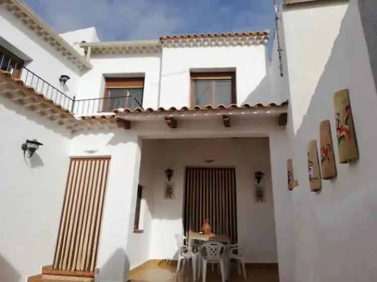 Consta de dos patios uno puede servir de parquing y poder guardar las bicicletas, una terraza, 3 habitaciones de matrimonio y 2 dobles, dispone de cocina totalmente equipada, dos comedores y 3 baños completos.