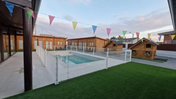Aquí podrás relajarte en una de las tres casas de madera que cuentan con todas las comodidades: cocina equipada, baño completo, televisión,... Además, podrás compartir momentos divertidos y especiales en la sala de reunión. Y si te gusta el aire libre, podrás aprovechar las barbacoas, las zonas de juego infantil y la piscina que hay en el recinto.