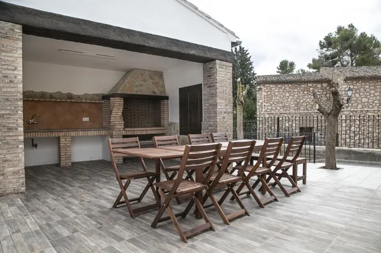 Cuenta con una zona exterior habilitada con una barbacoa cubierta y aseo. Todo disponible para 10 personas.