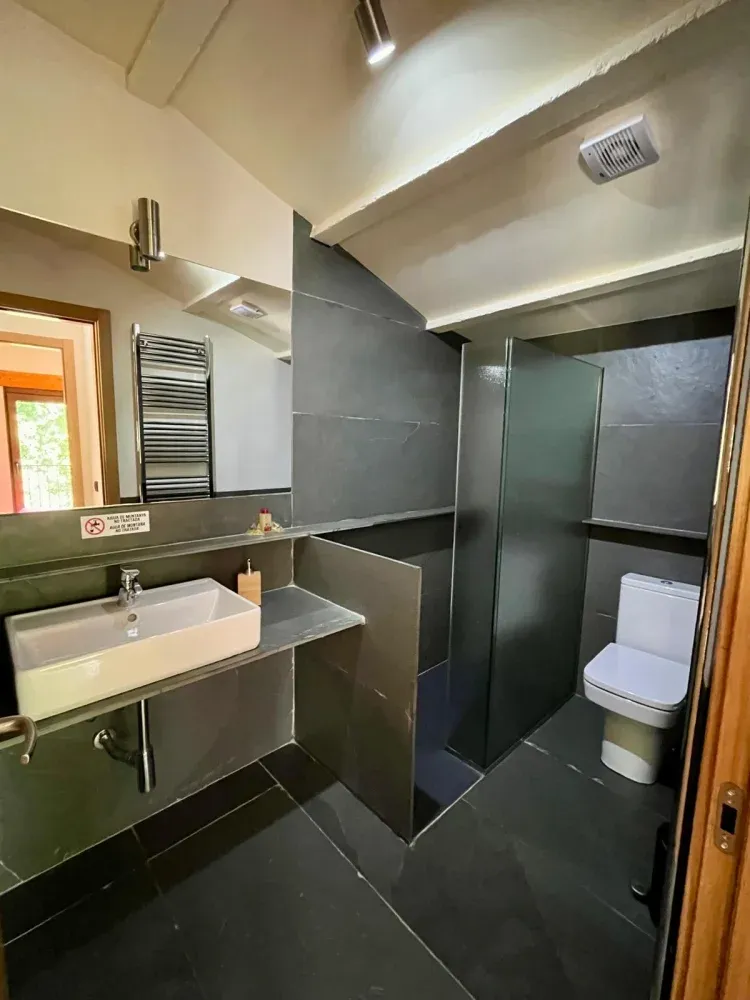 Bienvenido al Apartamento El Bac, nuestro apartamento familiar diseñado y pensando para tu comodidad y privacidad. Este acogedor apartamento rustico cuenta con una habitación con cama extra grande (180x200) y ventanal con vistas a la montaña. El moderno baño tiene la ducha con acabados de pizarra, dispone de secador de pelo, toallas, champú y gel de baño. El salón-comedor con suelo de madera y pizarra, tiene grandes ventanales con salida a la terraza, dispone de sofá-cama para dormir dos personas, chimenea y televisor. La cocina abierta, esta equipada con vitrocerámica, nevera, microondas, tostadora y lavavajillas.