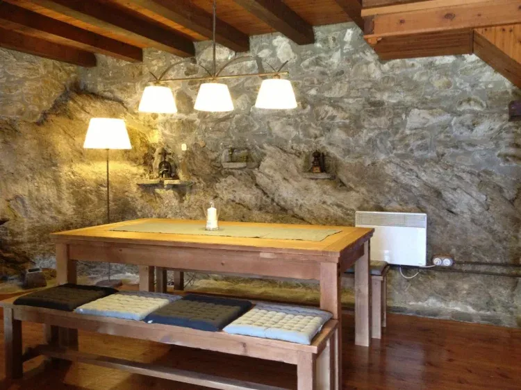 La casa está situada en el mismo pueblo y tiene una capacidad máxima para 13 personas, dispone de 5 habitaciones (3 habitaciones dobles, 1 habitación con litera y 1 habitación con dos literas y una cama supletoria), 3 baños, una cocina independiente equipada, comedor, sala de estar con chimenea, patio con barbacoa y un jardín con vistas espectaculares.