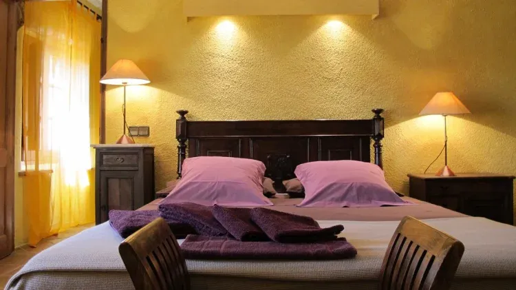 La casa se compone de: 5 habitaciones dobles todas ellas con baño completo, chimeneas, calefacción central, piscina, jardín, ping-pong, parquing para bicicletas y caballos, parque infantil. Podrás disfrutar de nuestro huerto ecológico. Aceptamos mascotas bajo petición.