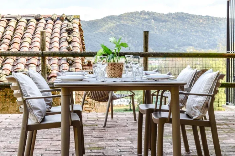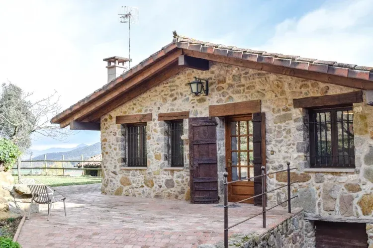 Delante de La Cabaña, destaca el antiguo patio restaurado y una gran zona al aire libre con jardín, barbacoa y mesa. Un espacio al exterior ideal para disfrutar de la gran belleza natural del entorno y de las maravillosas vistas a La Vall d’en Bas.