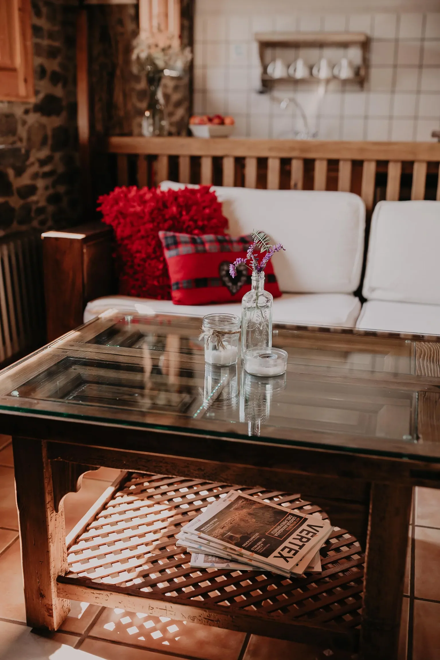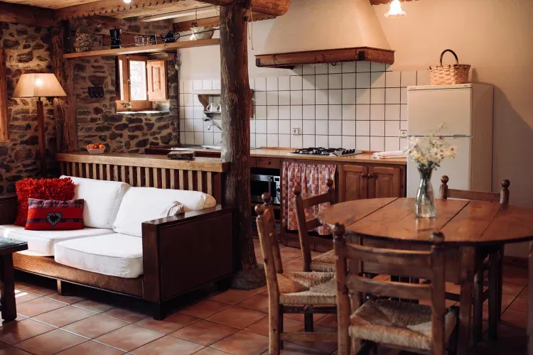 Está distribuida en una planta baja, a la entrada un agradable espacio formado por la sala de estar, equipada con TV, sofá y chimenea, que se puede utilizar como barbacoa, el comedor con mesa y sillas y la cocina equipada con nevera, horno/microondas y lavadora. En la misma planta hay una habitación con cama doble y una cama individual y una habitación doble, baño equipado con ducha y bañera. La casa dispone de cuna y de una cama supletoria. Calefacción central. También ofrece servicio de wifi libre.